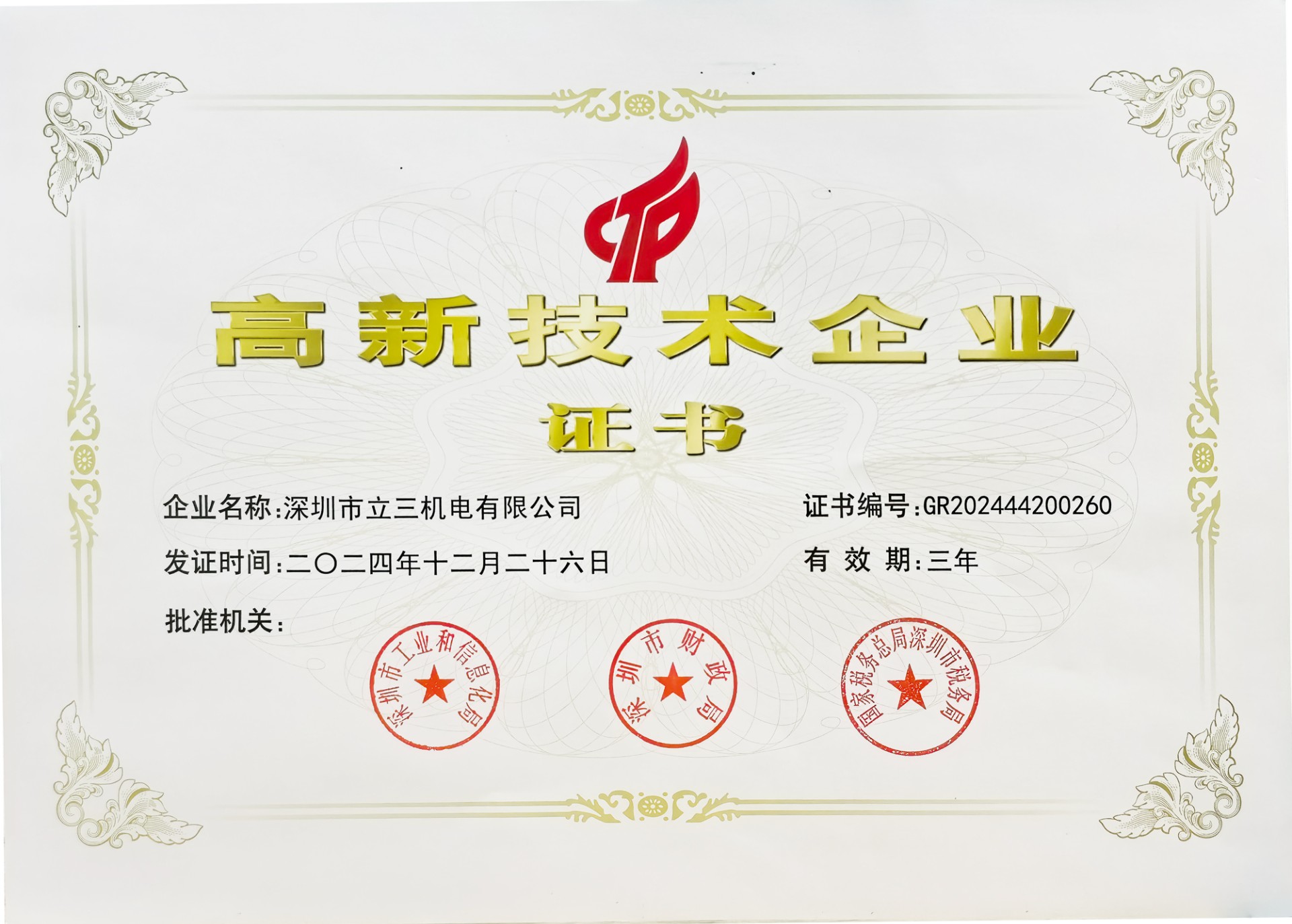 国家级高新技术证书